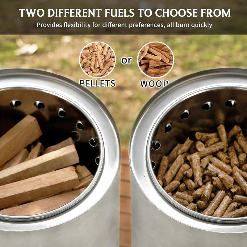 Cooking opportunities: Equipped with a sturdy stove rack suitable for 6–8 inch pots, this small smokeless firepit lets you cook delicious meals while enjoying the warmth of the flame. It adds both convenience and fun to family gatherings or outdoor camping.