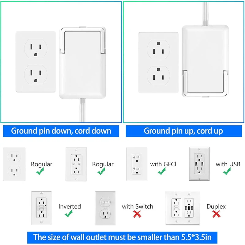 Say goodbye to cluttered plugs and cords: Just attach the sleek flat power strip plug to your duplex receptacle, streamline your space with our ultra-thin electrical outlet cover. Say goodbye to clutter and hazards with our flat plug extension cord. Experience convenience and safety with our outlet cover extension cord.