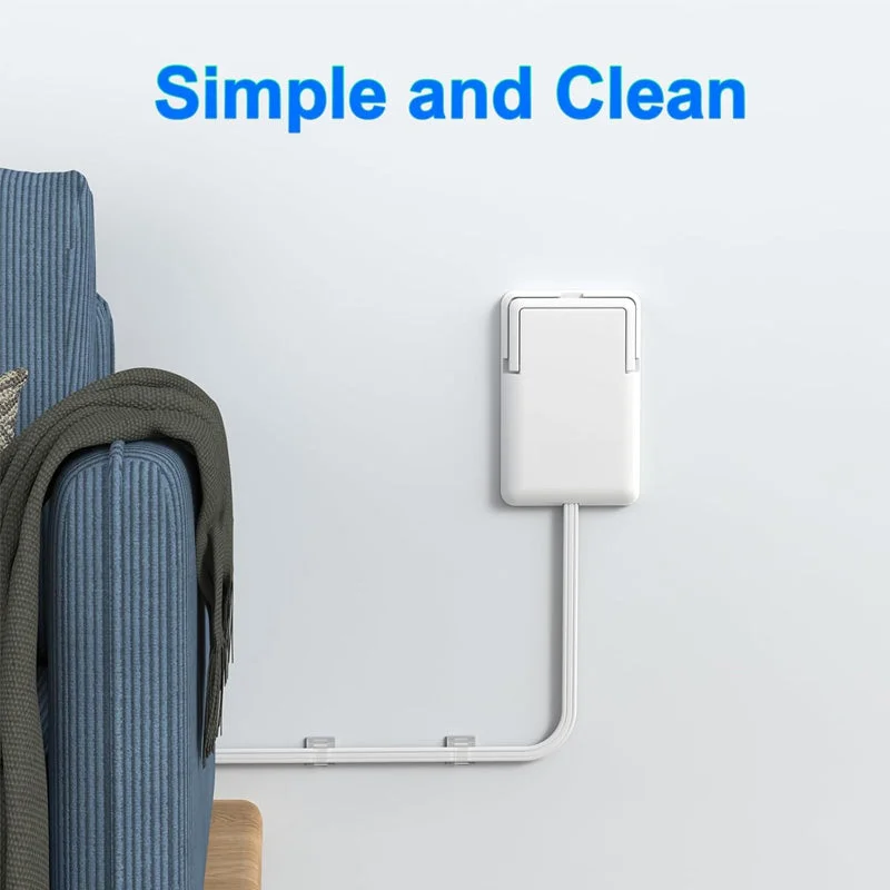 Included adhesive cord kit: Package includes ultra-thin extension cord and adhesive cord clips, ensuring a neat and secure installation of the thin extension cord on the wall for neatly fixing wires to walls.
