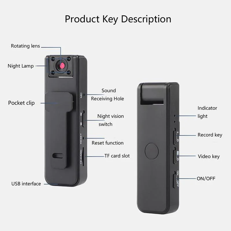 Features: Night-vision works in low light conditions. 180° rotation lens offers versatile shooting angles. Portable design is easy to carry for all your activities. Wearable fits comfortably on your body.