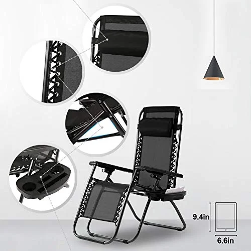 Comfortable with cup holder: The Zero Gravity Chairs offer a highly comfortable reclined position, with an adjustable headrest. Each chair comes with a convenient cup holder tray for drinks, magazines, phones/tablets, or other small items.